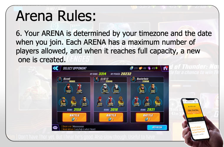 6. The Marvel Strike Force – Arena is based on your timezone and the date when you join. Every Arena has a maximum number of players allowed, and when it reaches full capacity, a new instance of the Arena will be created.